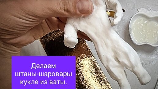 Показываю как сделать штаны-шаровары ватной игрушке.
