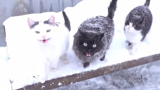 Кошки мёрзли на морозе и ждали меня чтобы я их накормил