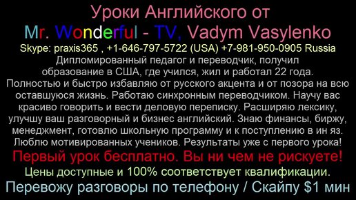 Уроки Английского от Mr. Wonderful, Vadym Vasylenko