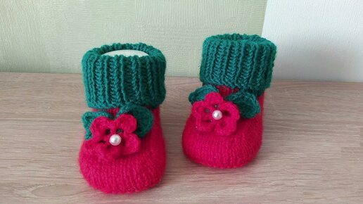 Вязание для начинающих. Пинетки с цветком за 23 минуты.