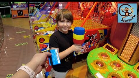 Милан и Папа в парке развлечений с игровыми автоматами. Манкиту