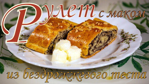 Рулет из бездрожжевого теста с сочной маковой начинкой и миндалём!