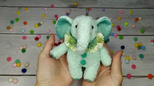 Купила салфетку для мытья посуды и сшила из нее мягкую игрушку слоника