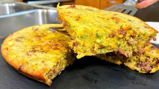 Рецепт заливного пирога с фаршем. Простой пирог. Три сосиски 3 яйца, почти стакан муки и молока