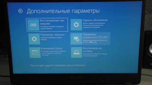 Выбор действия и ВОССТАНОВЛЕНИЯ СИСТЕМЫ Windows 10 на ноутбуке