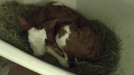 Новорождённый телёнок. Занесли в дом, чтобы не замёрз
