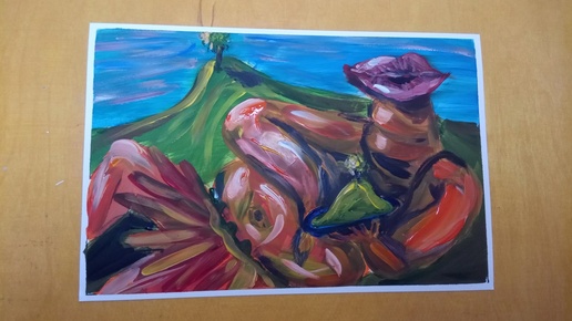 Пейзаж с туземцем на первом плане. Возможно сюрреализм, скорее - попытка. Рисунок.