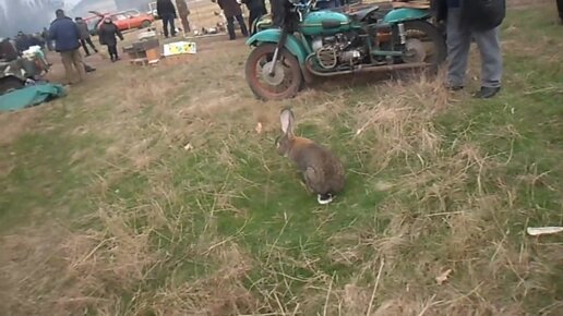 Ручной кролик породы серый великан на "птичьем рынке" .