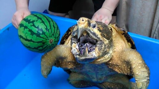 Аллигаторовая Черепаха Разрывает Арбуз за Один Укус