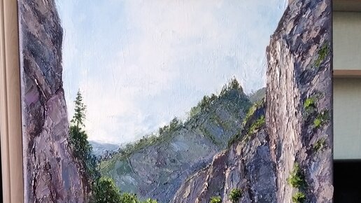 Картина мастихином пошагово. Живопись маслом. Горы Алтая. Часть1
