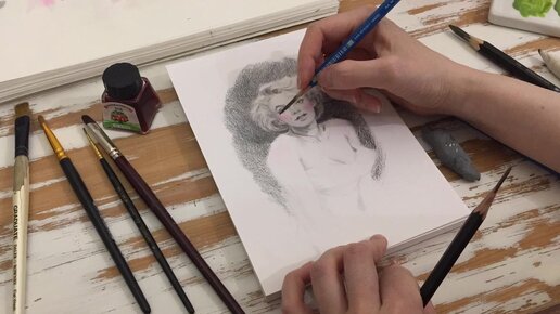 Быстрый набросок карандашом - процесс рисования Мэрилин Монро