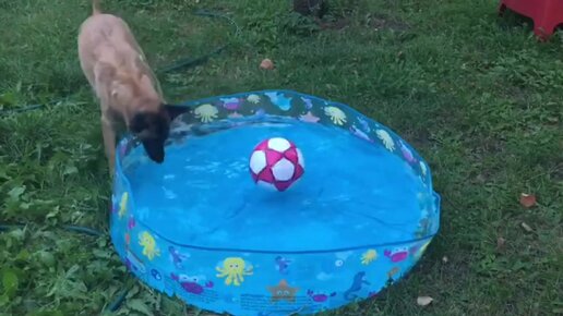 Собака-бояка. Что сильнее - страх перед водой или желание добыть мячик