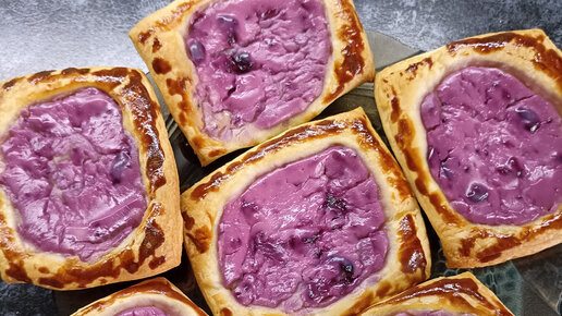 Слоеные квадратики с крем-сыром и черничным вареньем