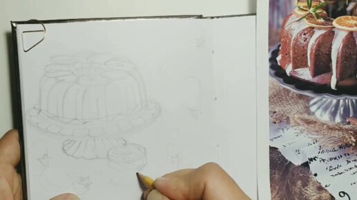Рисуем рождественский кекс: построение рисунка, набросок карандашом