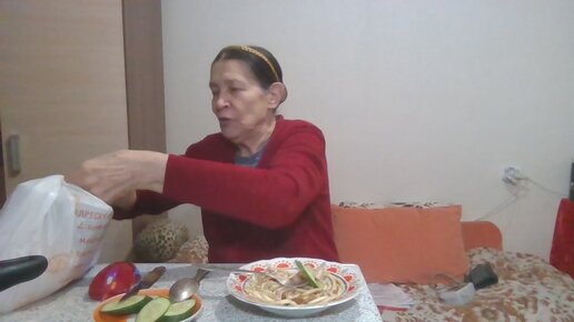 Приготовилась ужинать. Рассказываю у кого была в гостях. Полезный подарок от Валюшки