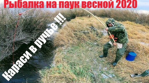 Рыбалка 2020 ЁКЛМН ,Увидели карасей в ручье и давай их ловить! Рыбалка на паук подъемник весной 2020