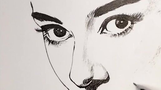 Женский портрет. Рисую известную актрису гелевой ручкой.