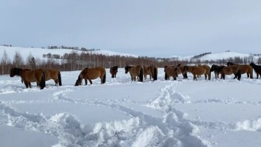 Зимой наши лошади добывают себе еду, раскапывая копытами слой снега
