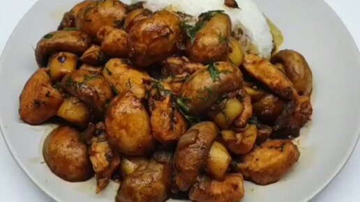 Сочная и очень вкусная курочка с грибами. Легкий и быстрый обед.