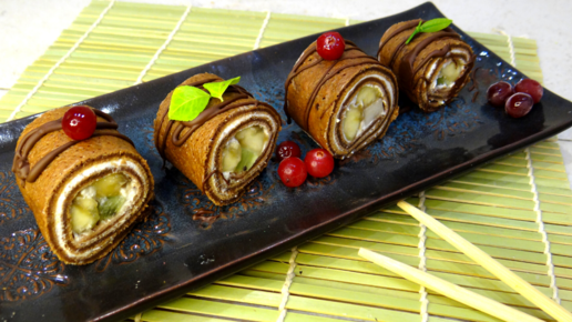 Теперь блинчики готовлютолько так! РОЛЛЫ из БЛИНОВ с фруктами и творогом