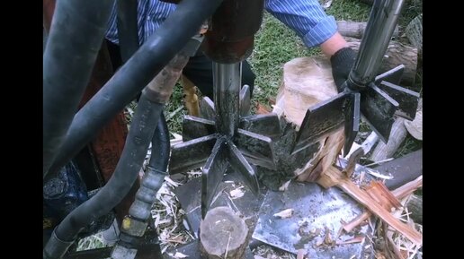 Колка дров при помощи гидравлического дровокола собранного своими руками.