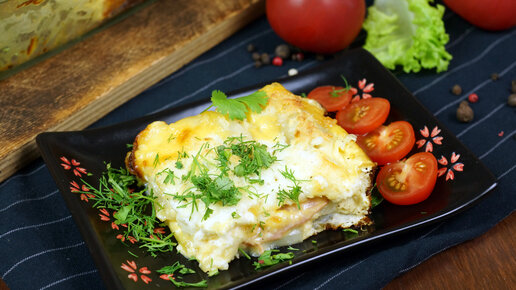 Слоеная Картофельная запеканка с ветчиной и сыром