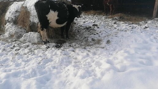 Коровы, телята и бычки зимой гуляют на улице / содержание коров зимой в деревне