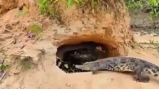 Утка случайно высадила крокодилье яйцо и теперь рептилия думает, что она его мама.