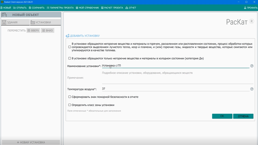 Определение категории наружной установки с ГП (Версия 2021-06-01)