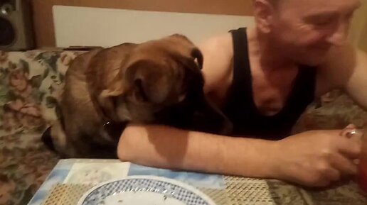 Щеночек-попрошайка. Не дают кушать со стола, он обижается.