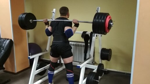 Приседания со штангой ~200 кг с остановкой