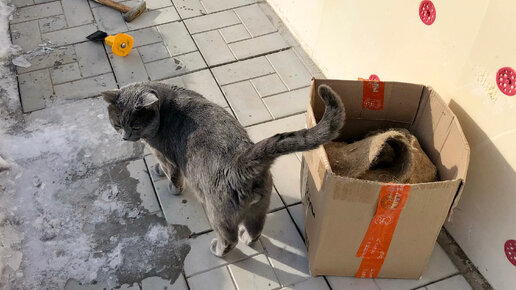 Серый Тёма вышел помогать мне работать по дому, заодно и прогнал младшего Черныша, чтобы не мешал.