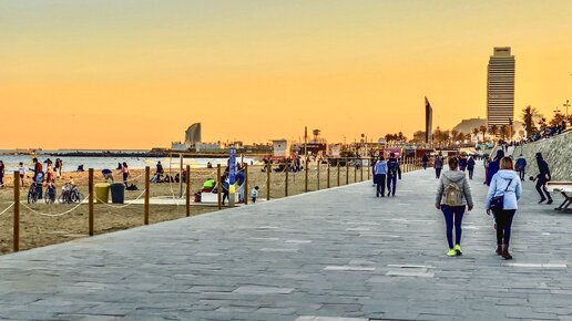 Барселона. Пляж Побленоу. Что делают местные после работы?