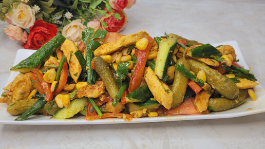 Мой муж просит готовить этот салат. Куриный салат.