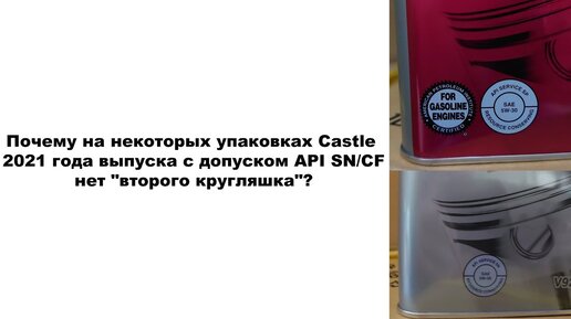 Почему на некоторых упаковках Castle 2021 года выпуска с допуском API SN/CF нет "второго кругляшка"?