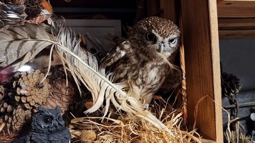 Сыч Лучик терзает кусочек филина Ёлки. А чего целую сову для малыша зажали?!