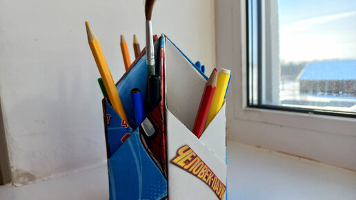 Зачем покупать,если можно сделать?Сделпли карандашницу из картона.