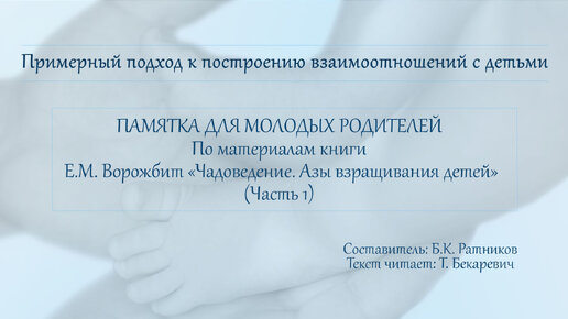 Далее: Примерный подход к построению взаимоотношений с детьми | Памятка молодым родителям | Часть 2