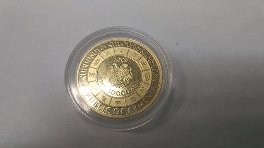 Золотая монета Армении. 10000 драм 2008 года. Скорпион