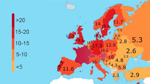 Количество ресторанов Mcdonald's на 1 млн жителей