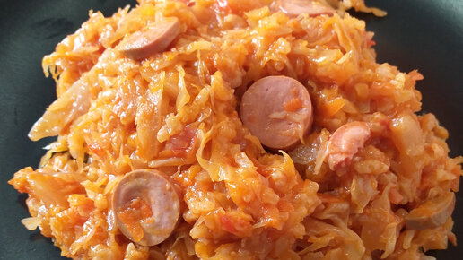 Капуста, тушёная с рисом и сосисками