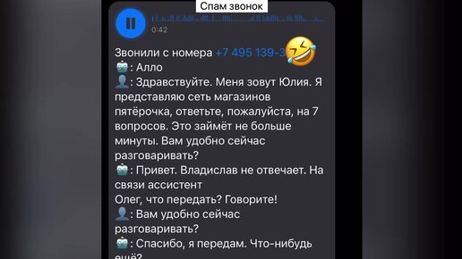 Бот смешно отвечает на звонок. Часть 3 (весь текст разговора в аудиозаписи не влез)