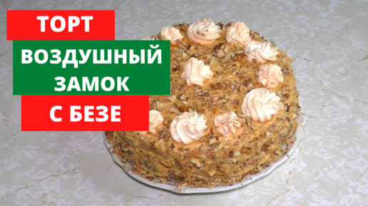 Бисквитный торт Воздушный замок с безе.Очень вкусный и нежный!