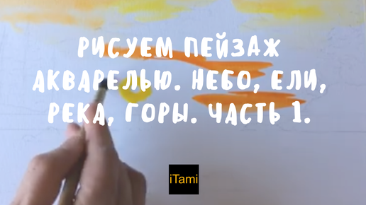 Рисуем пейзaж акварелью. Небо, ели, река, горы. Часть 1.