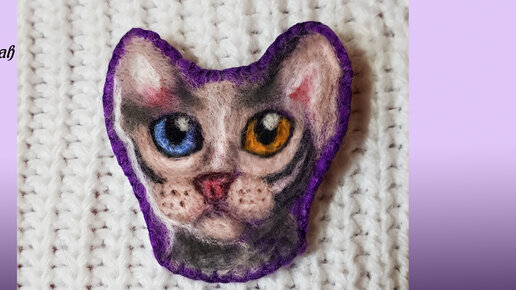 Кошка- брошка породы сфинкс🌸Валяная брошь🌸Как свалять брошку из шерсти 🌸Брошка из шерсти пошагово
