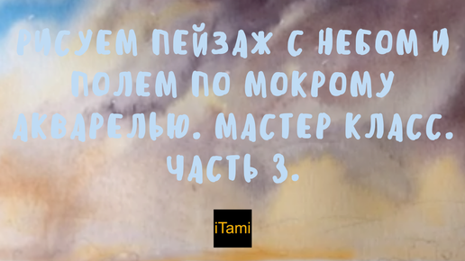Рисуем пейзаж с небом и полем по мокрому акварелью Мастер класс. Часть 3.