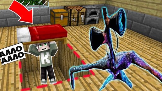 ПРЯЧУСЬ ПОД КРОВАТЬЮ ОТ СИРЕНОГОЛОВЫЙ В МАЙНКРАФТ ТРОЛЛИНГ ЛОВУШКА SCP SIREN HEAD