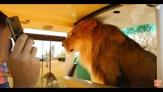 ОГРОМНЫЙ ЛЕВ прячется в машине с людьми от других львов