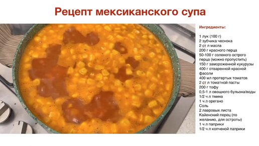 Рецепт томатного мексиканского супа с фасолью и кукурузой
