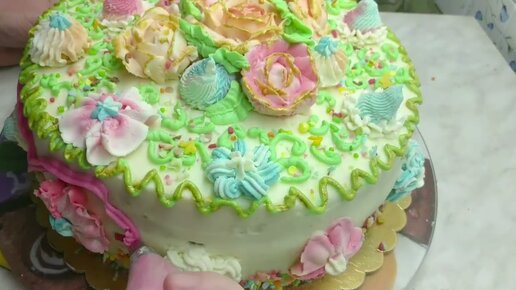 Сборка торта и украшение замороженным кремом.